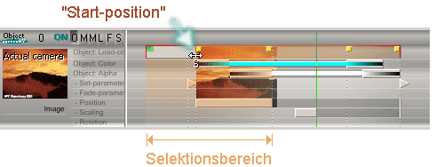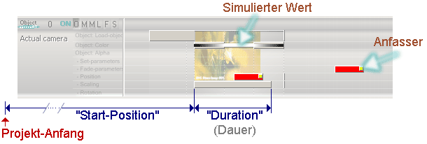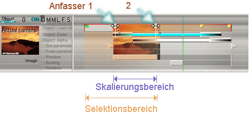 "Duration" - Anfasser (Dauer)Wird die Start-Position verändert, wird auch die Dauer des Befehls geändert. Der Befehl wird nicht verschoben!